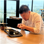 The trout was briefly smoked in a wooden box at the counter and now reappeared as sushi, and was very good. Trout can be a quite flavourless fish as these days it all river trout is now farmed in the UK, but the smoking gave it an extra taste note. This was followed by a parcel of baby vegetables wrapped in tofu skin, all resting in dashi broth. The tuna that we saw earlier now reappeared as sushi of the fatty belly tuna otoro, seasoned with salt from Wales. This was gloriously rich, with the salt just cutting through enough. This was followed by a seared otoro tuna roll with oyster cooked over binchotan charcoal at the counter. Binchotan is the finest and priciest charcoal, this particular one coming from Wakayama prefecture in Japan, and imparting a delicate smoky flavour note. Langoustine from the Isle of Skye was the final sushi course, topped with caviar and brushed with olive oil (from Jordan). Langoustine has lovely natural sweetness and went well with the subtle saltiness of the caviar.